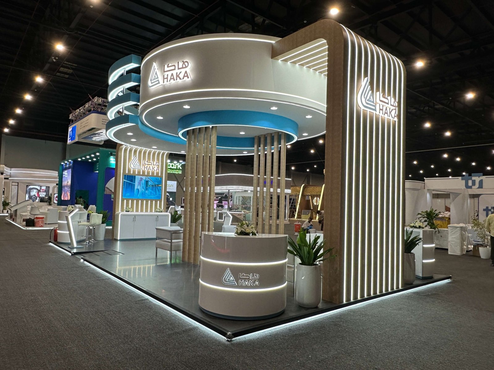 Dynamic lighting solutions to highlight your presence and engage attendees.
